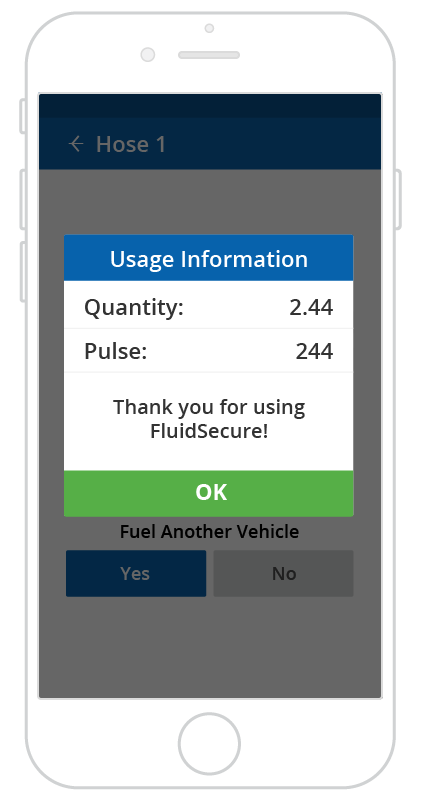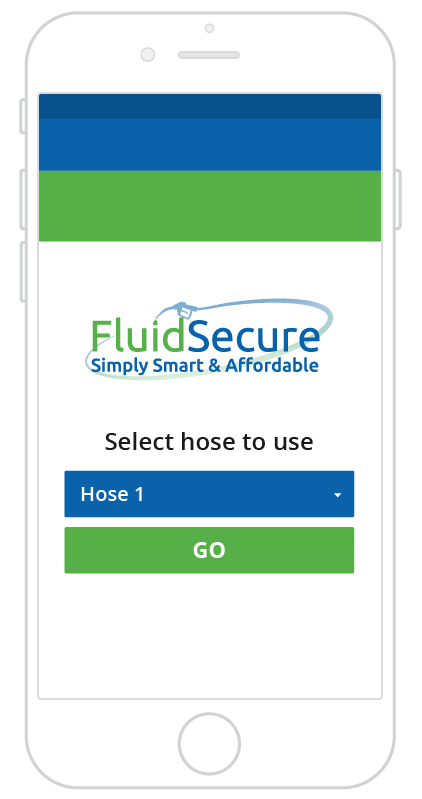 The APP works on all smartphones and is available for both Android and Apple’s IOS and is simply downloaded from either the Android Play Store or Apple Store.  The APP allows the smartphone to communicate via the cellular network to the software solution in the FluidSecure CLOUD. The smartphone connects with the requested hose (drop down list of the hoses available for the particular user is made available on the APP.) Via the