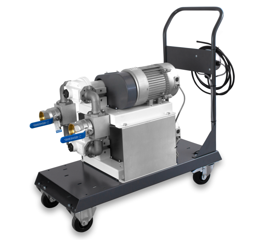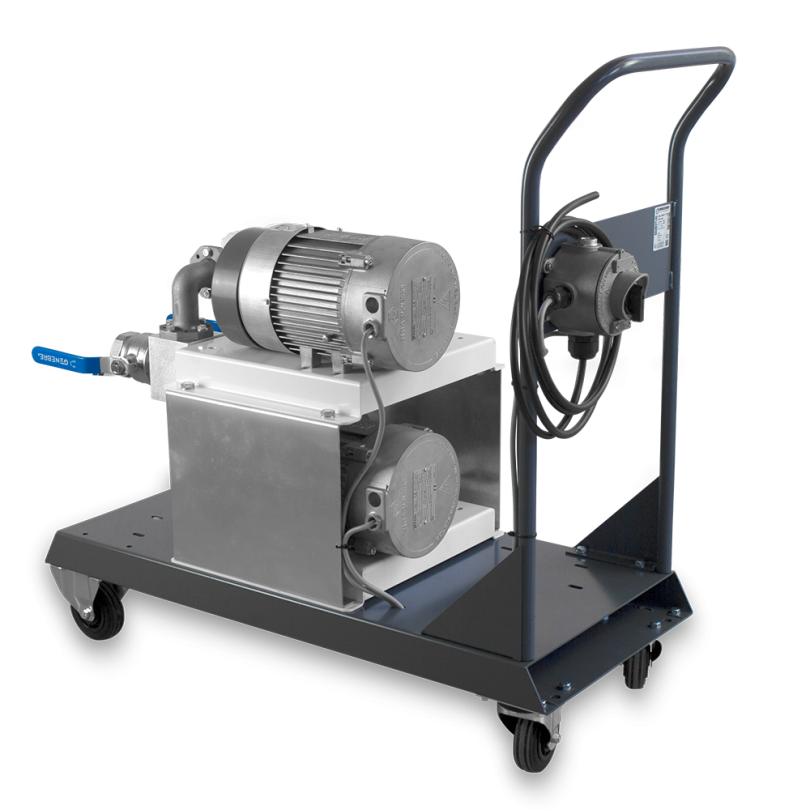 EExd high flow pump kit assembled in a mobile bedplate with wheels