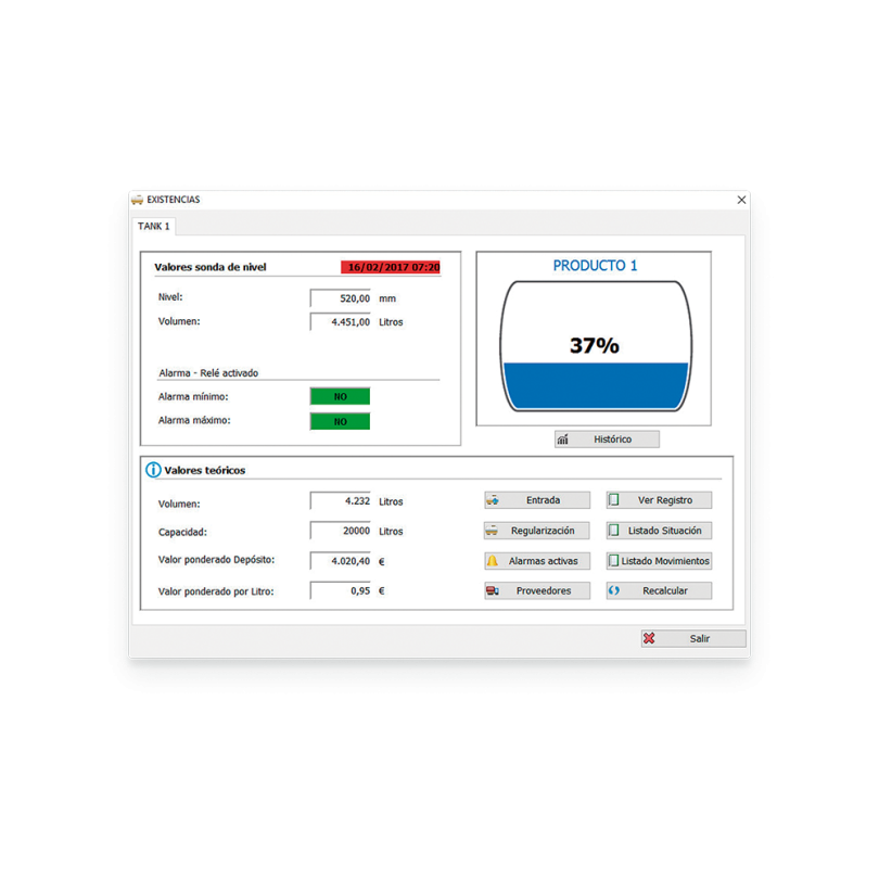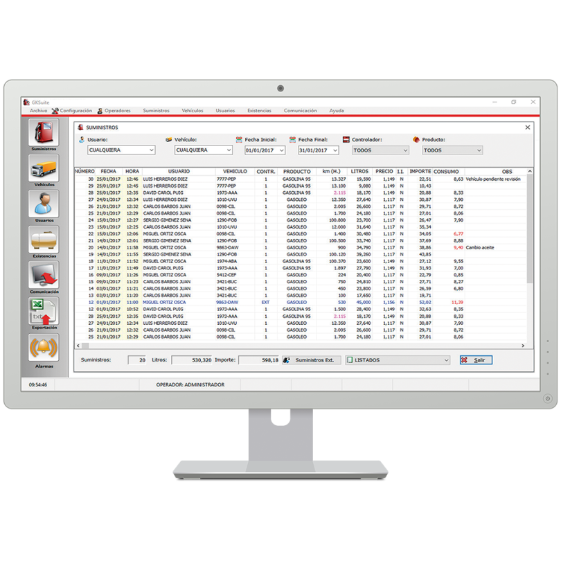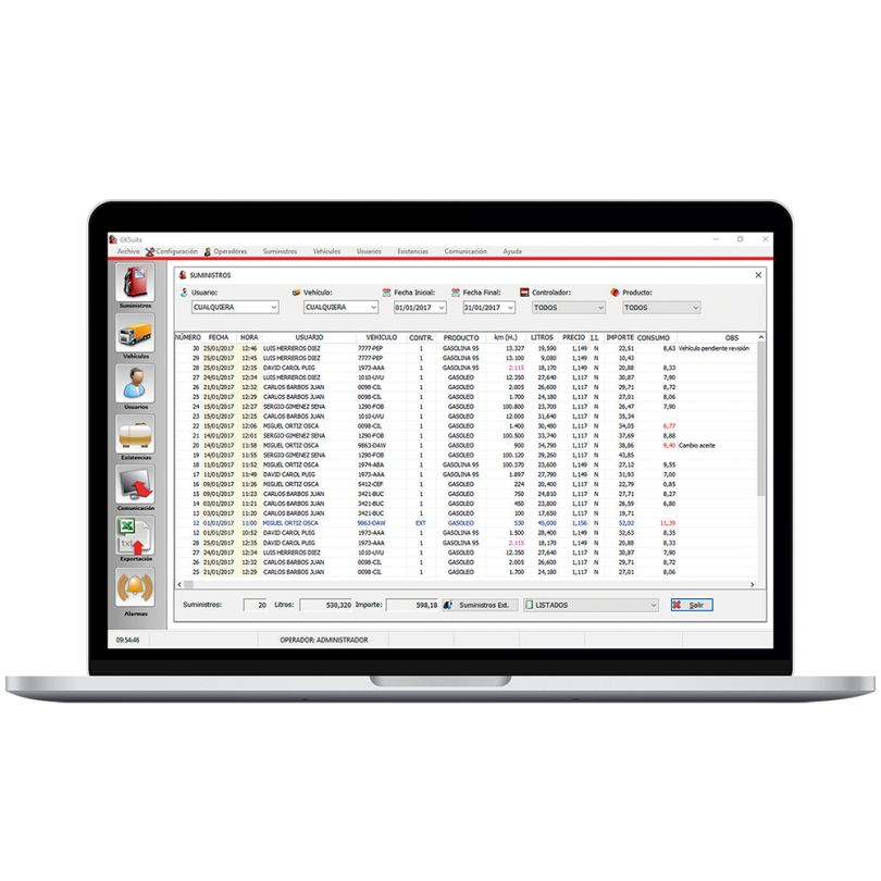 Establish limits or balance by user, create groups of users and/or vehicles and get the supply lists by user and/or vehicle. It also allows the integrated management of the GENIUS level gauge.